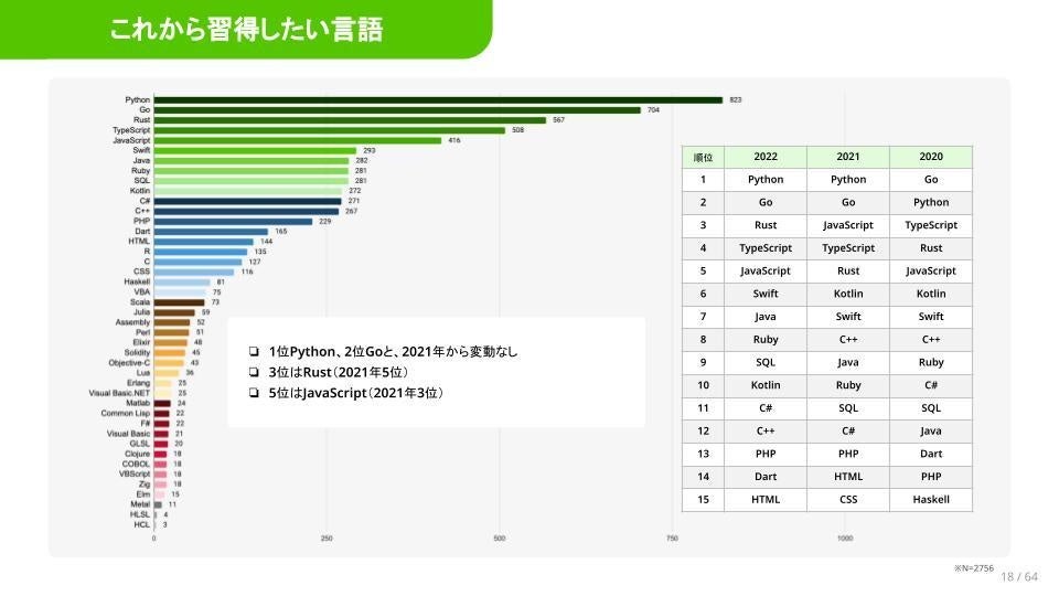 約2,700名のユーザーを対象に、大規模アンケート調査を実施。言語やツールのトレンド・年収・転職・働き方等“エンジニアの全て“を解析