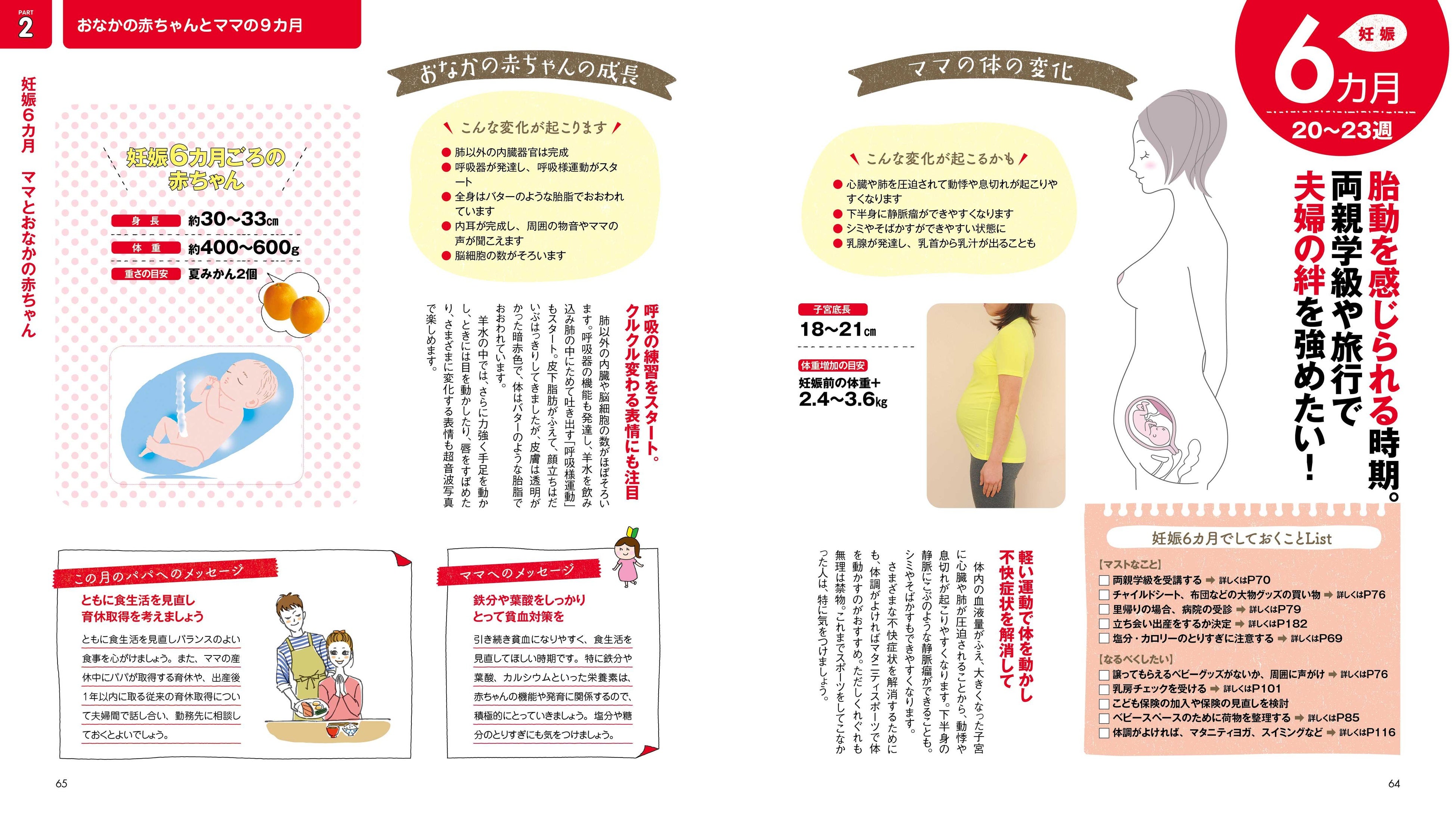 監修は、安達知子医師(母子愛育会総合母子保健センター愛育病院名誉院長)。妊娠6か月に考える「パパの育児休暇取得」や「無痛分娩」についての最新情報も収録。