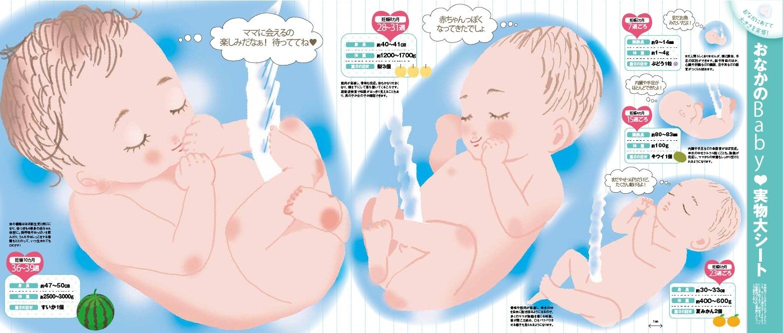 妊娠中の実物大の赤ちゃん。お腹の中の様子がよくわかります。