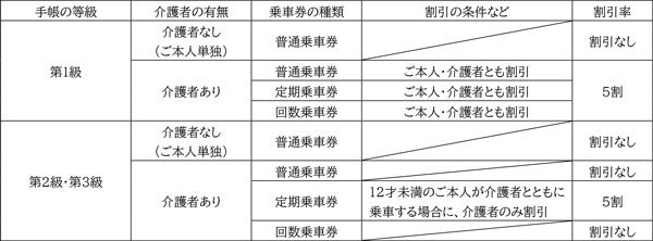 ・ご本人・介護者とも割引を受けることができるのは、同一の種類・乗車区間・有効期間の乗車券を同時にお買い求めいただき、同一の列車に乗車する場合に限ります。