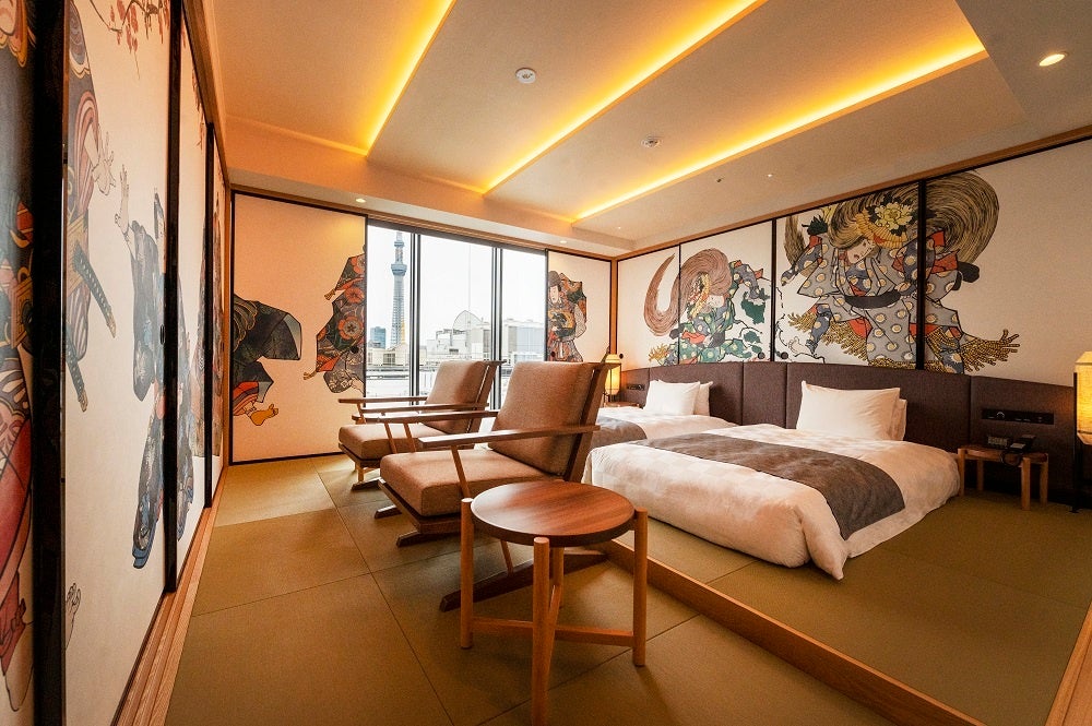 「浅草ビューホテル アネックス 六区」(台東区)の歌舞伎ルームは襖絵が圧巻。