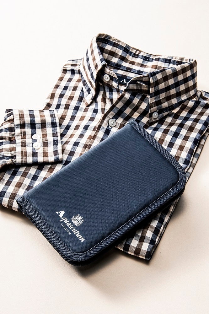 1851年、イギリスで誕生した服飾ブランド『アクアスキュータム』。世界で初めて防水ウール生地を発明し、1897年には英国王室よりロイヤルワラント(王室御用達)を獲得。この歴史あるブランドとコラボしたポーチは、日頃はお薬手帳ケースとして、旅に出る際にはトラベルポーチとしてお役立てください。