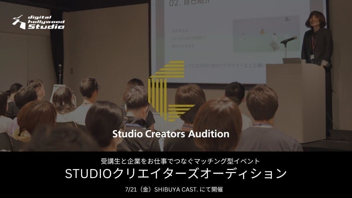 「STUDIOクリエイターズオーディション」とは、デジタルハリウッド受講生の優秀作品を選出し、企業の採用担当者に向けてプレゼンテーションを行い、作品発表終了後のジョブマッチングの懇親会で採用したい受講生をスカウトできる、これまでに50回以上の開催実績があるデジタルハリウッド伝統のイベントです。