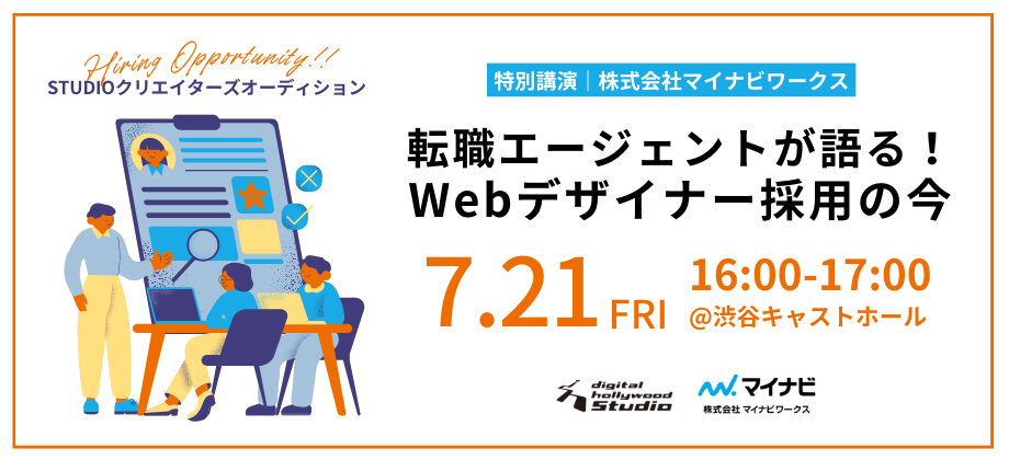 【イベント】就職・転職マッチングイベントにてマイナビワークスによる企業向け特別講演『転職エージェントが語る!Webデザイナー採用の今』開催|デジタルハリウッドSTUDIO