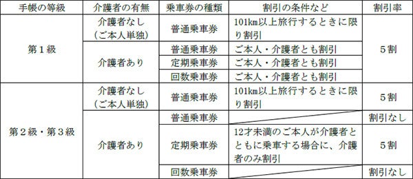 ・ご本人・介護者とも割引を受けることができるのは、同一の種類・乗車区間・有効期間の乗車券を同時にお買い求めいただき、同一の列車に乗車する場合に限ります。