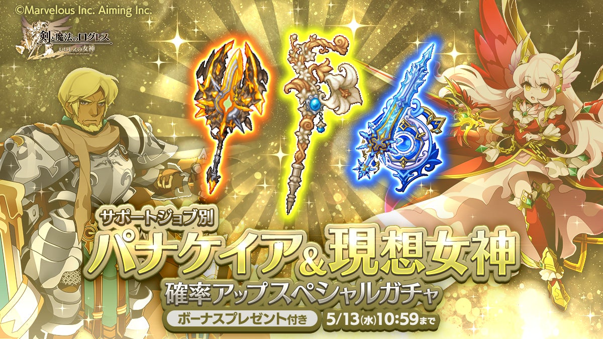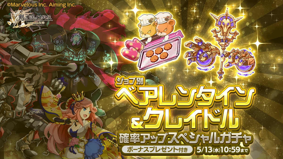 株式会社マーベラス(代表取締役社長:照井 慎一/所在地:東京都品川区)は、スマートフォン向け本格オンラインRPG『剣と魔法のログレス いにしえの女神』において、2026/4/28(火)に「ジョブ別 ベアレンタイン&クレイドル確率アップスペシャルガチャ」の販売、および「ログレス四神演義」のクエスト追加を含むアップデートを行ったことをお知らせいたします。