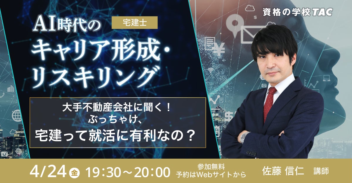 【TAC宅建士講座】就活で差がつく?学生の宅建取得メリットを大手不動産会社調査から解説するセミナー開催!4/24(金)19:30