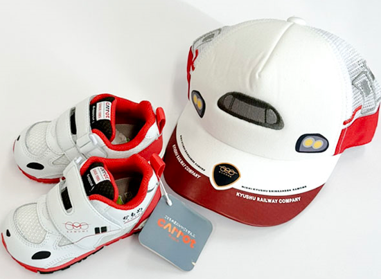 【内容】西九州新幹線「かもめ」をモチーフにしたキャップとスニーカー(ムーンスターキャロットかもめ)を組み合わせたセット商品です。