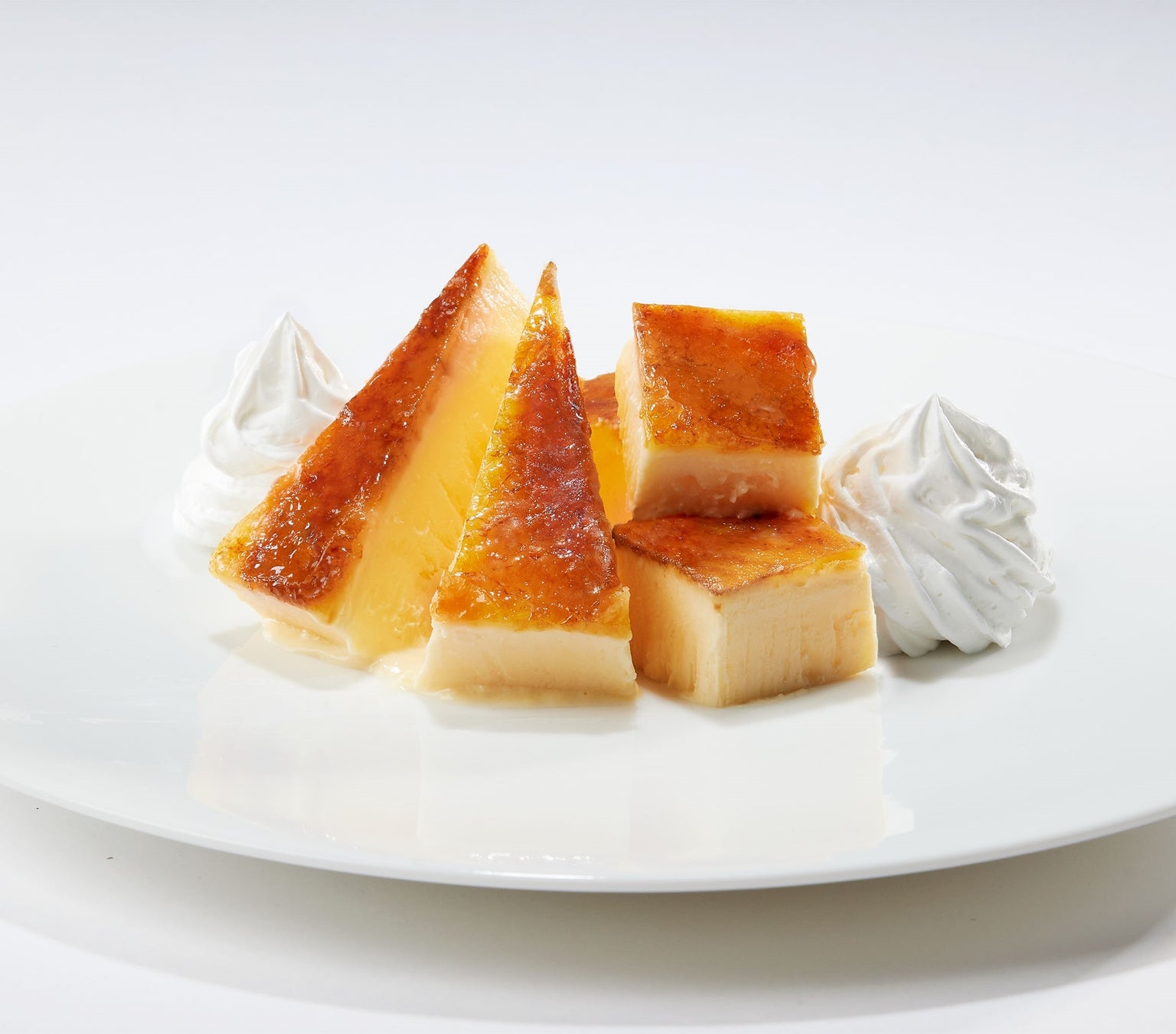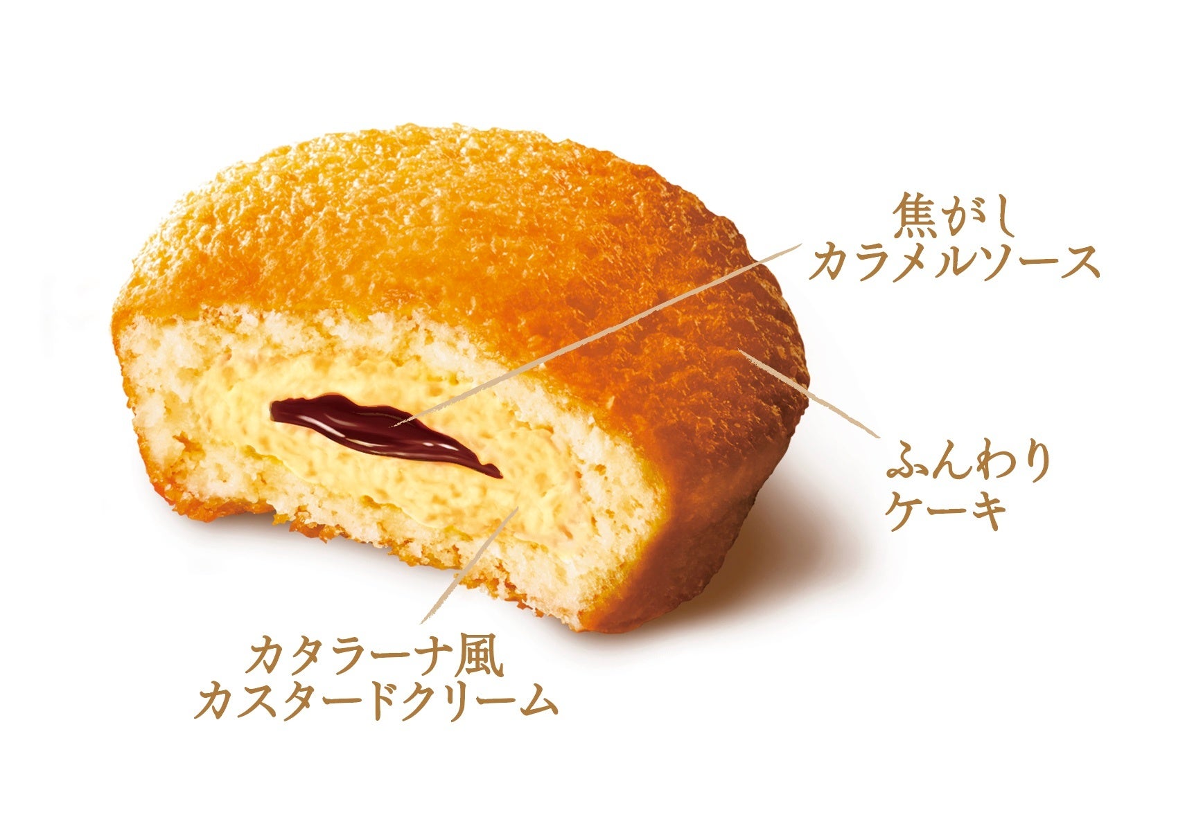 ふんわりケーキの中に、北海道産生クリーム*を使用したカタラーナ風カスタードクリームと焦がしカラメルソースを閉じこめました。