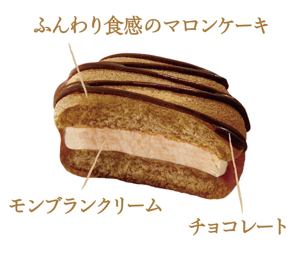 ふんわり食感のマロンケーキで、栗とカスタードの味わいが楽しめるモンブランクリームをサンド。