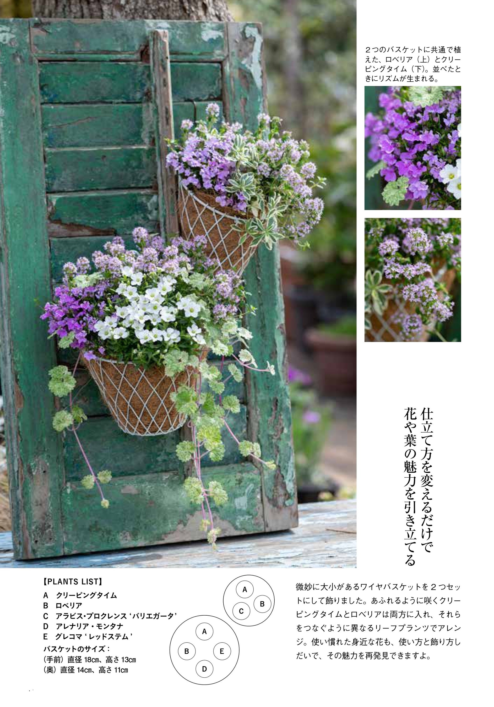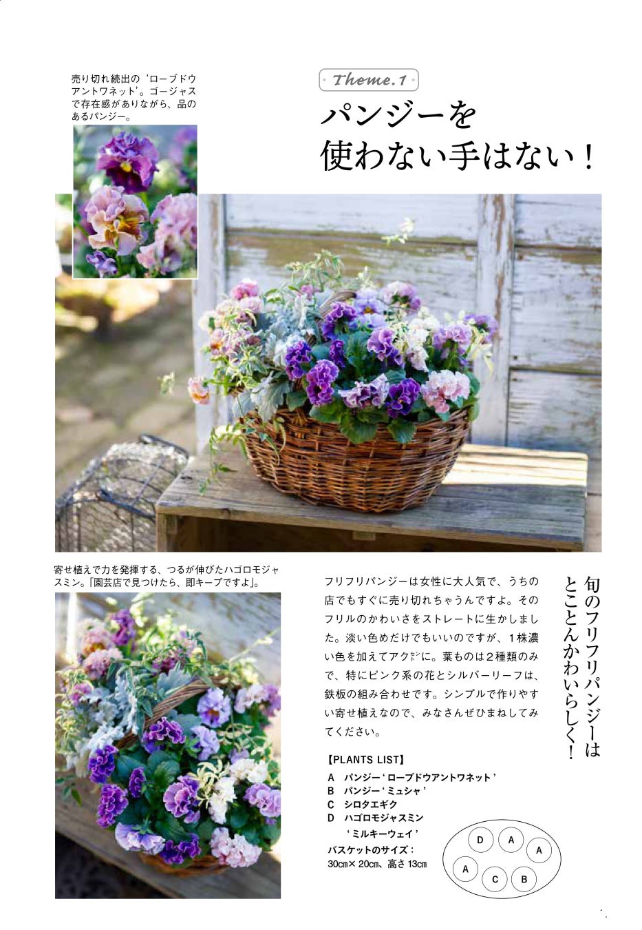 本書では植えつけ方も丁寧に解説しているので、完全にコピーすれば、黒田さんの世界観を再現できます。もちろん、まったく同じ素材がそろわなくても、自分の好きな花を選んで合わせれば、オリジナルの寄せ植えが完成します。寄せ植えの楽しみ方は無限大です!