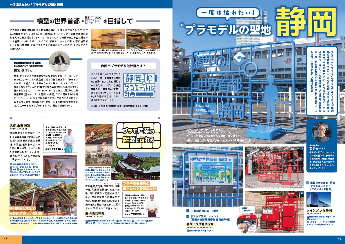 数々のメーカーが本拠地とし、プラモデルが文化として根付いている街、静岡。「模型の世界首都 」としての知名度もあがっているこの街には、プラモデルファンなら訪れるべきスポットがたくさん存在します。またレジェンドである田宮俊作氏(田宮模型)のインタビューも掲載。成り立ちから地元への思いまでを語ります。