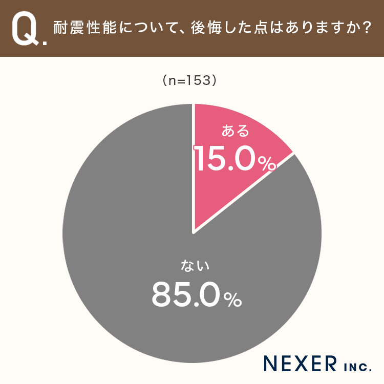 ■約15%が、耐震性能について「後悔した点がある」と回答