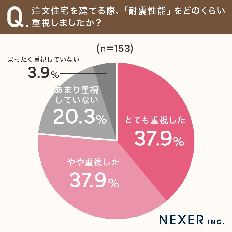 ということで今回は株式会社土屋ホームと共同で、事前調査で「注文住宅を建てたことがある」と回答した全国の男女153名を対象に「注文住宅における耐震性能への意識」についてのアンケートをおこないました。