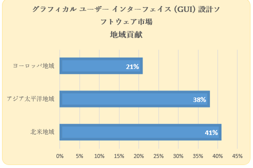 質問: グラフィカル ユーザー インターフェイス (GUI) 設計ソフトウェア市場で最大のシェアを占めるのはどの地域ですか?