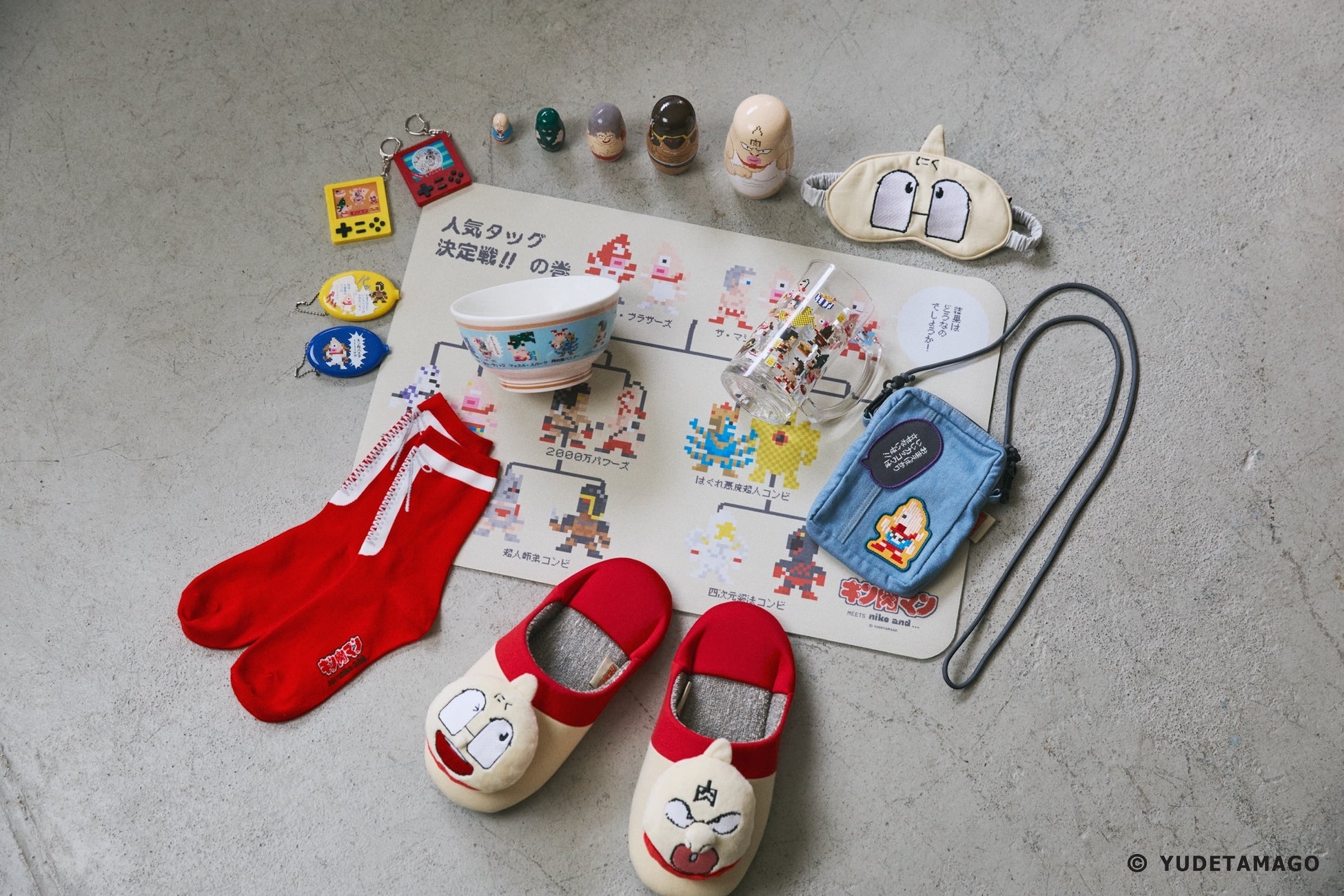 コラボレーションアイテムは、「キン肉マン」ファンに男性が多いことから、使いやすいデニム素材のアイテムをラインアップ。テリーマンのブーツをイメージした「靴下」や、ミート君の「アイマスク」など、キン肉マンのキャラクターになりきることができるユニークなアイテムも展開します。また「niko and ...」のコラボ企画としては初となる「マトリョーシカ」は、5体のキャラクターを模したユニークなデザインで、子どもから大人まで楽しんでいただけること間違いなしのアイテムです。