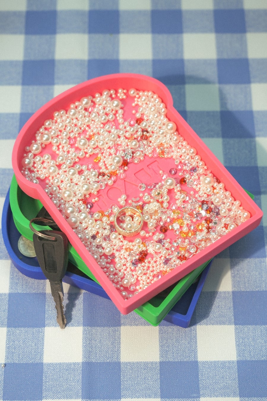 トースト をモチーフにしたスタッキング可能なトレー。