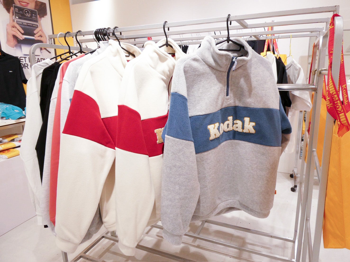 アメリカの老舗カメラブランド「KODAK」が展開する、レトロなフィルムカルチャーを現代のストリートファッションに融合させたアイテムを手掛けており、ジェンダーレスに愛されている「KODAK Apparel」。冬に大活躍するアイテムとして注目なのは、フリース素材のハーフジップのスウェット。大きくあしらわれたKODAKロゴを主役にし、レディライクなアイテムと合わせたコーディネートも大正解!