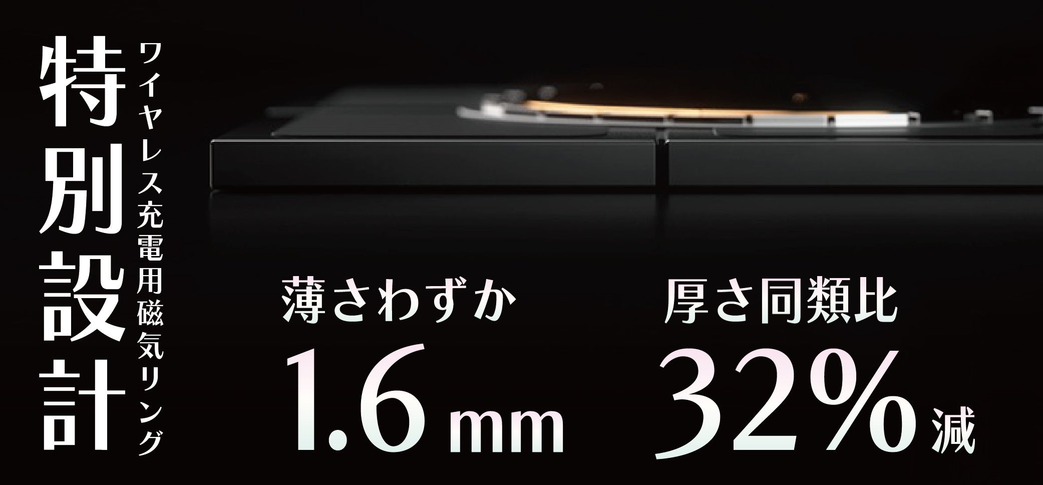 磁気リングまでも特別設計を⾏うことで厚み1.6mmを達成。