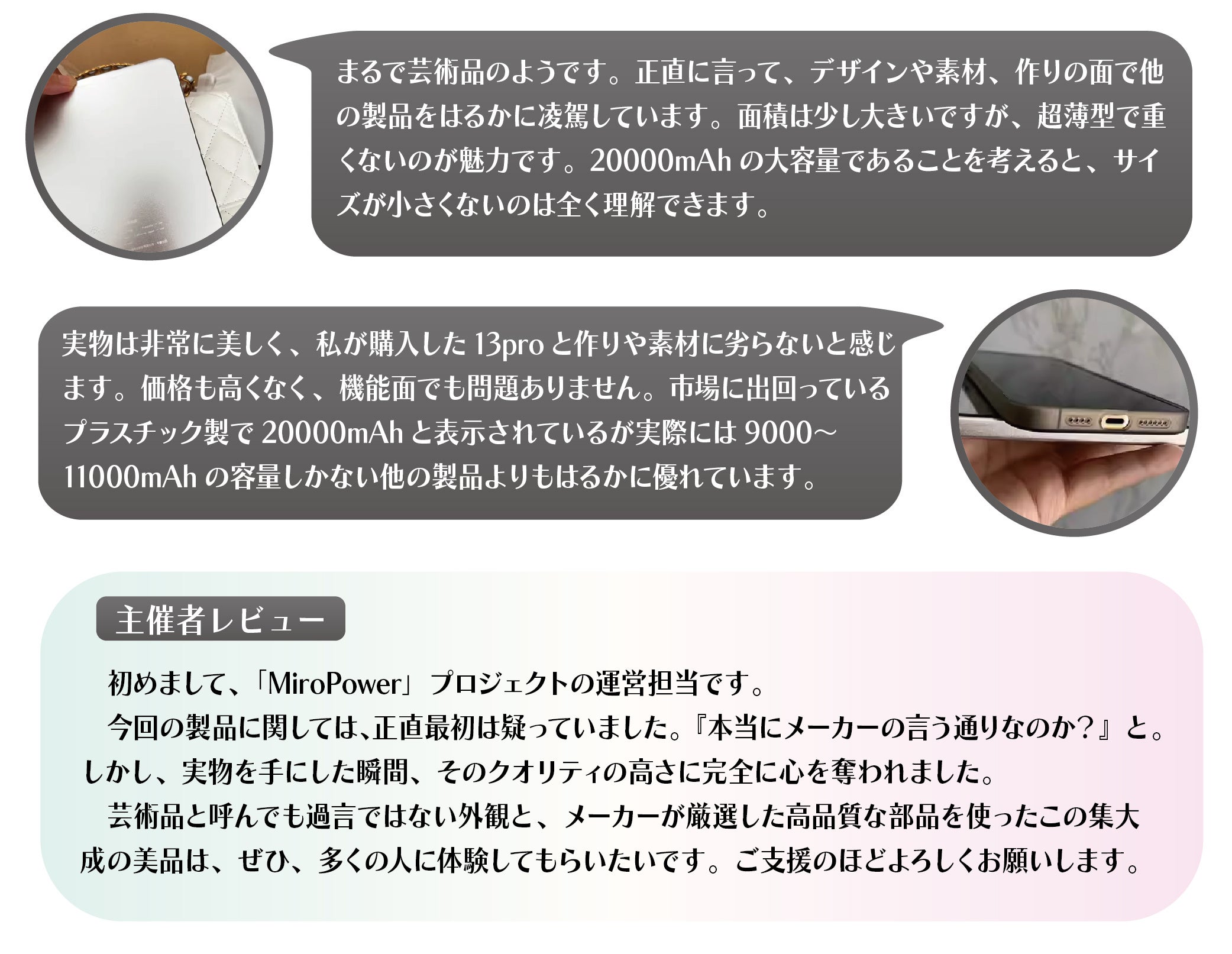 この度、「美」の流儀を貫くモバイルバッテリー「MiroPower」のクラウドファンディング【目標達成率5000%】を達成しました事をお知らせします。