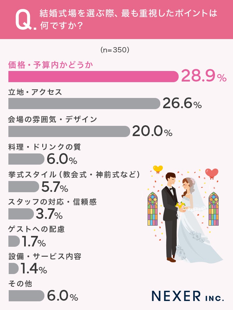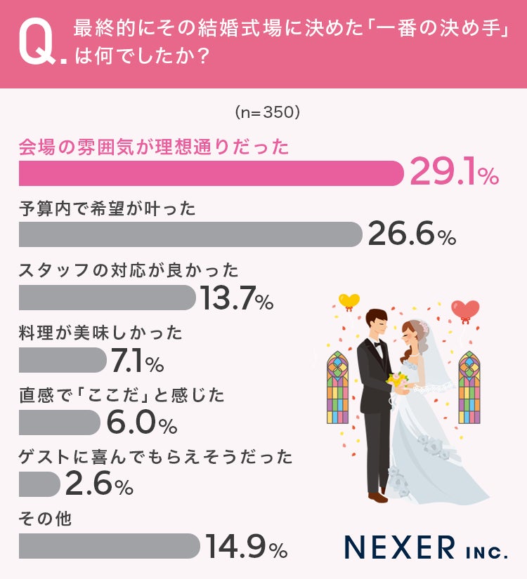 株式会社NEXER・結婚式場選びの重視ポイントと決め手に関する調査