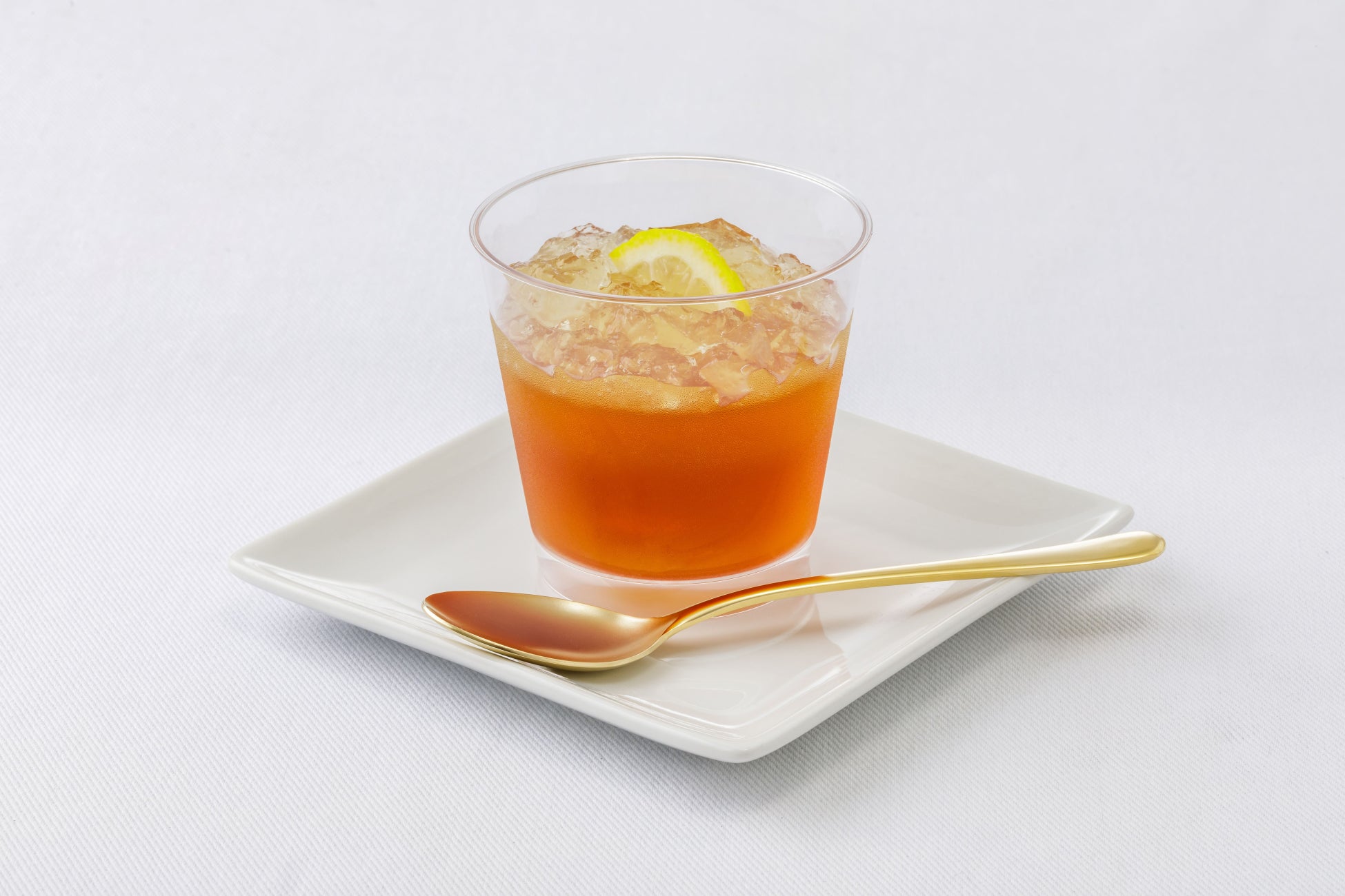 レモンゼリーとダージリンティーゼリーの二層構造。混ぜて食べていただくとレモンティー仕立てとなります。