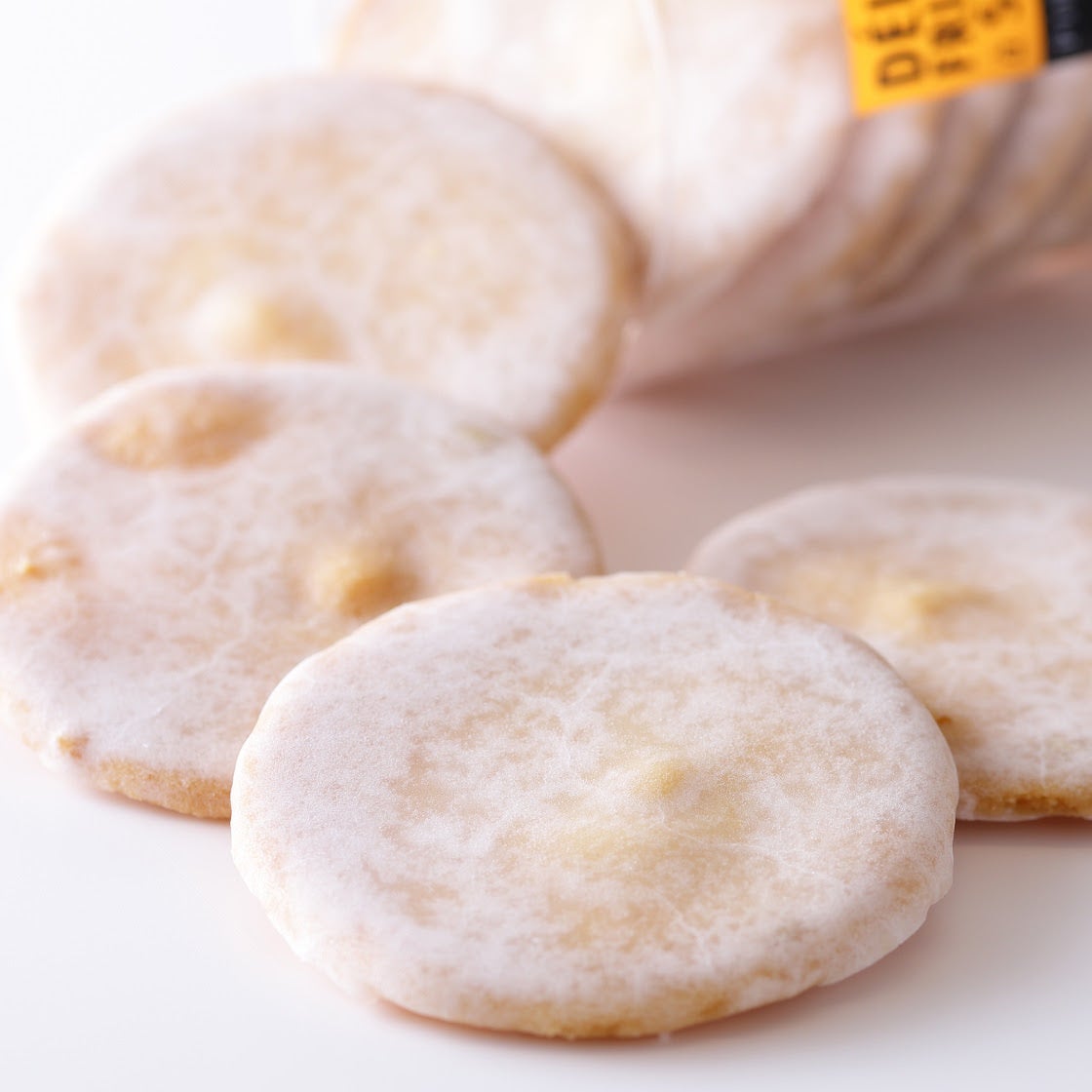からりと揚がったひとくちサイズの生地にレモンの酸味がさわやかに効いた揚げおかきです。