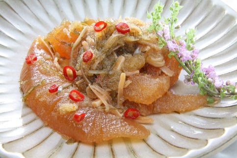 歯応えある数の子、するめ、昆布を醤油タレで漬け込んだ一品。