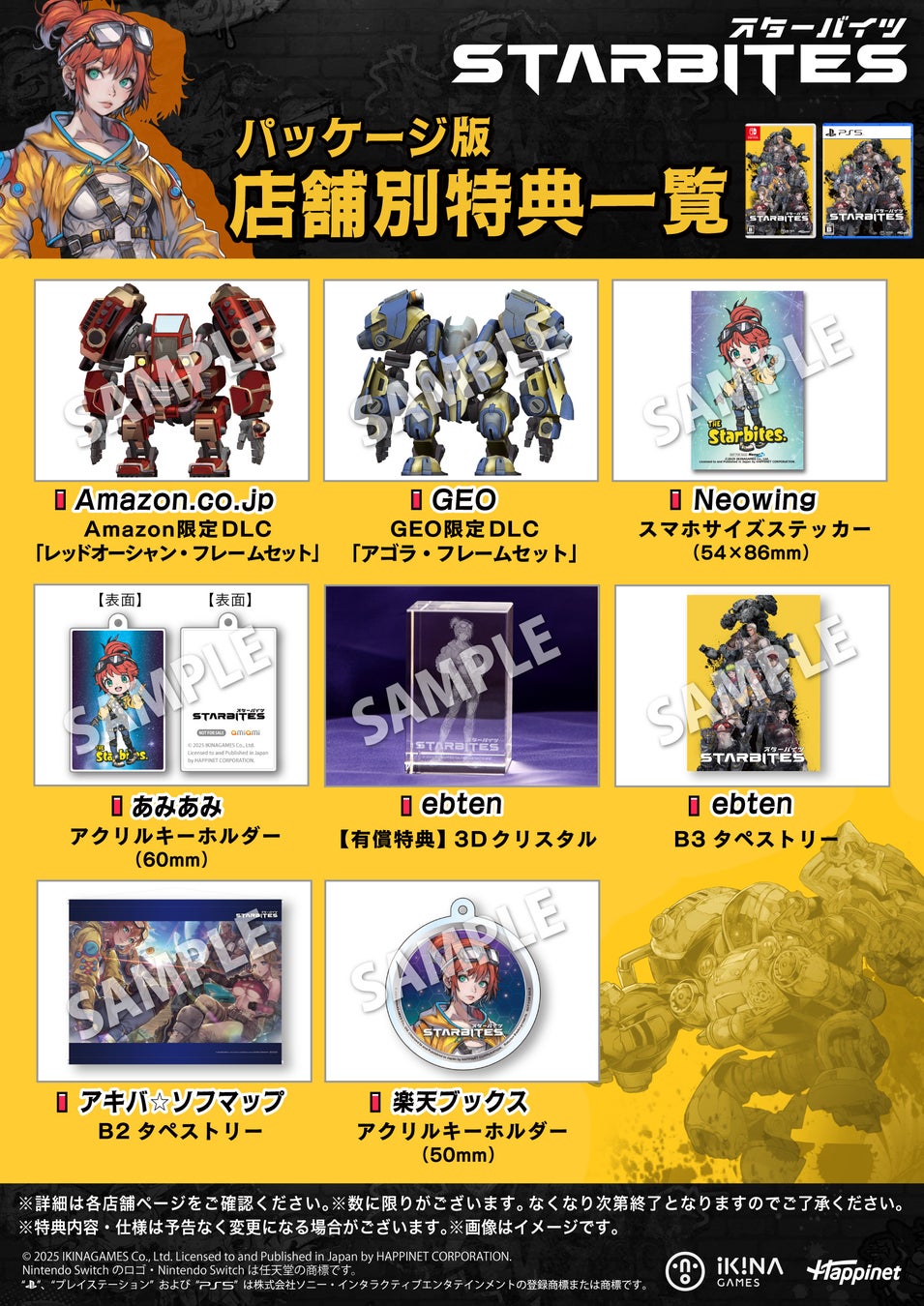 株式会社ハピネット(本社:東京都台東区、代表取締役社長:水谷 敏之、証券コード:7552)は、韓国のIKINA GAMESが開発した、Nintendo Switch/PlayStation5用ソフト『STARBITES』(日本語パッケージ版/ダウンロード版)を2025年10月16日(火)に発売することを決定しました。