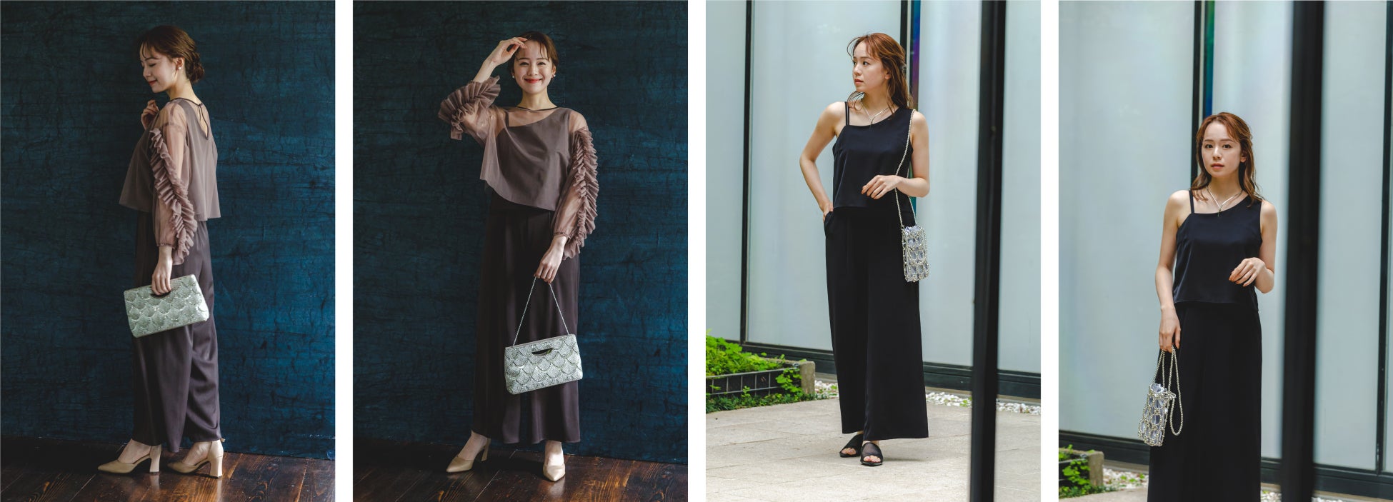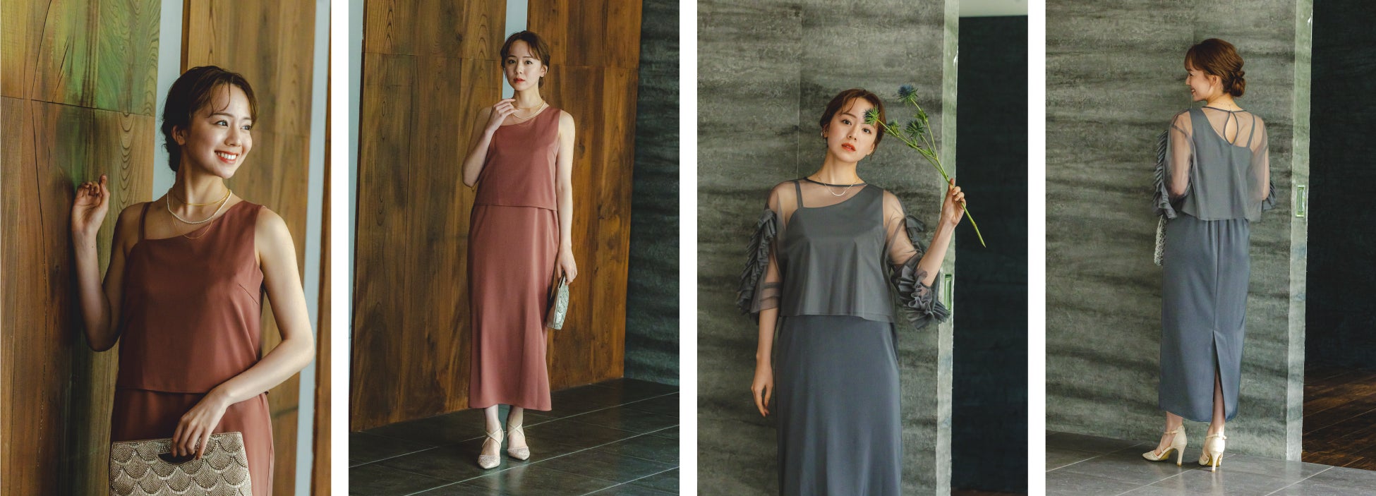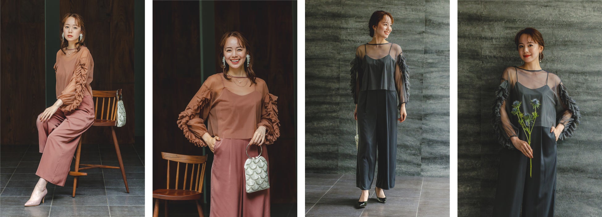 “選べるスタイル”をコンセプトにした3点セットのセットアップで、好みに合わせて選べるワンピースとサロペットの2型を展開します。何通りもの着回しや好みのスタイリングを自由アレンジにでき、出番の少ないオケージョンアイテムのイメージを払拭するアイテムです。