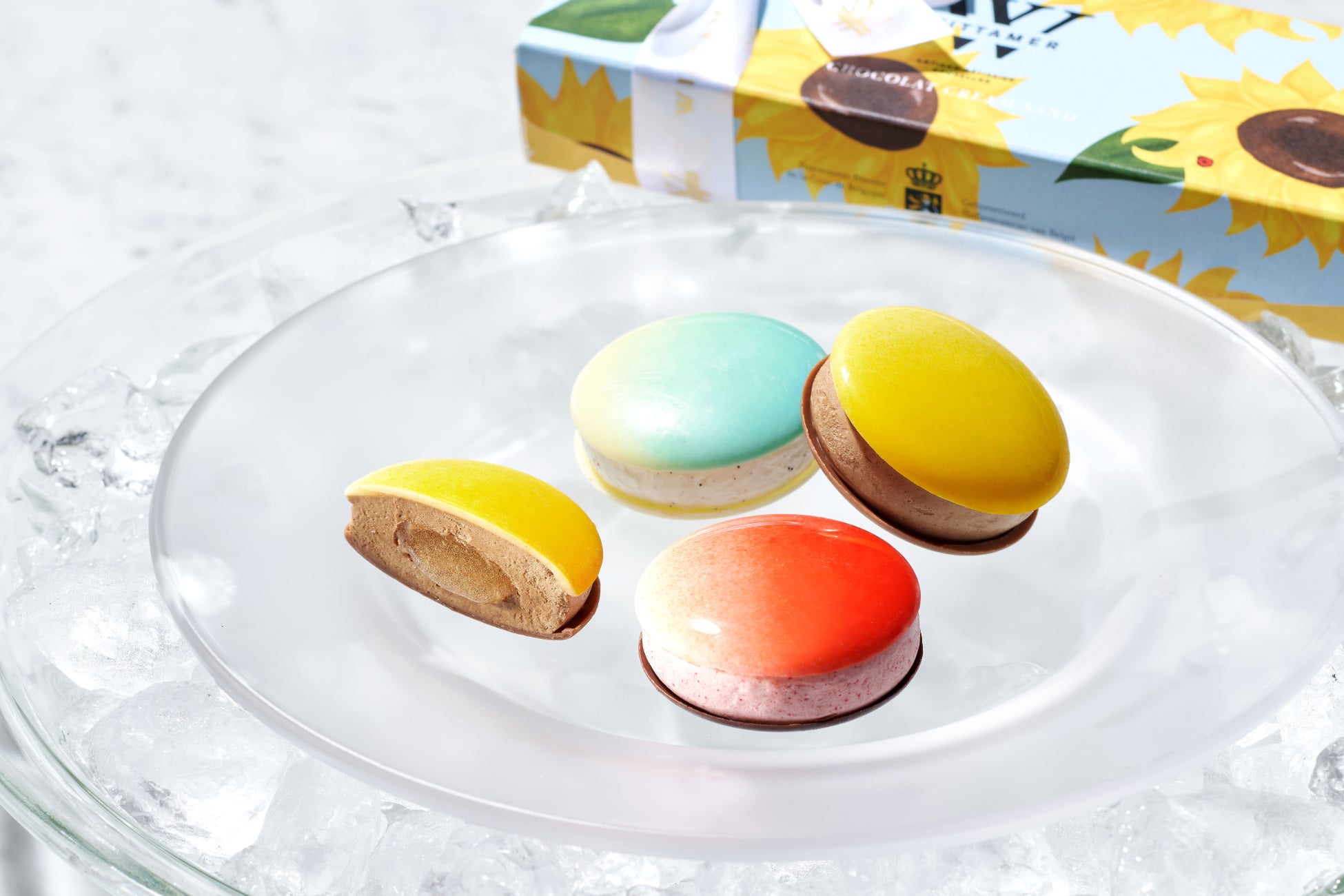 なめらかで軽い口あたりのチョコレートクリームでコンフィチュールやプラリネを包み、チョコレートでサンドしました。