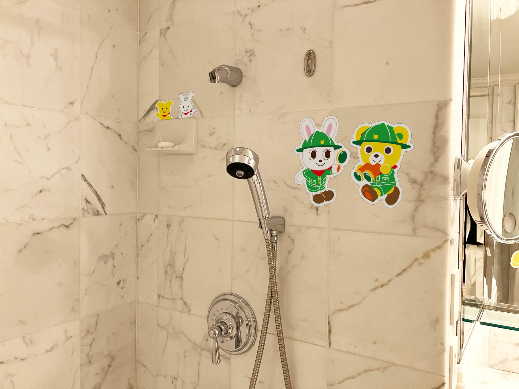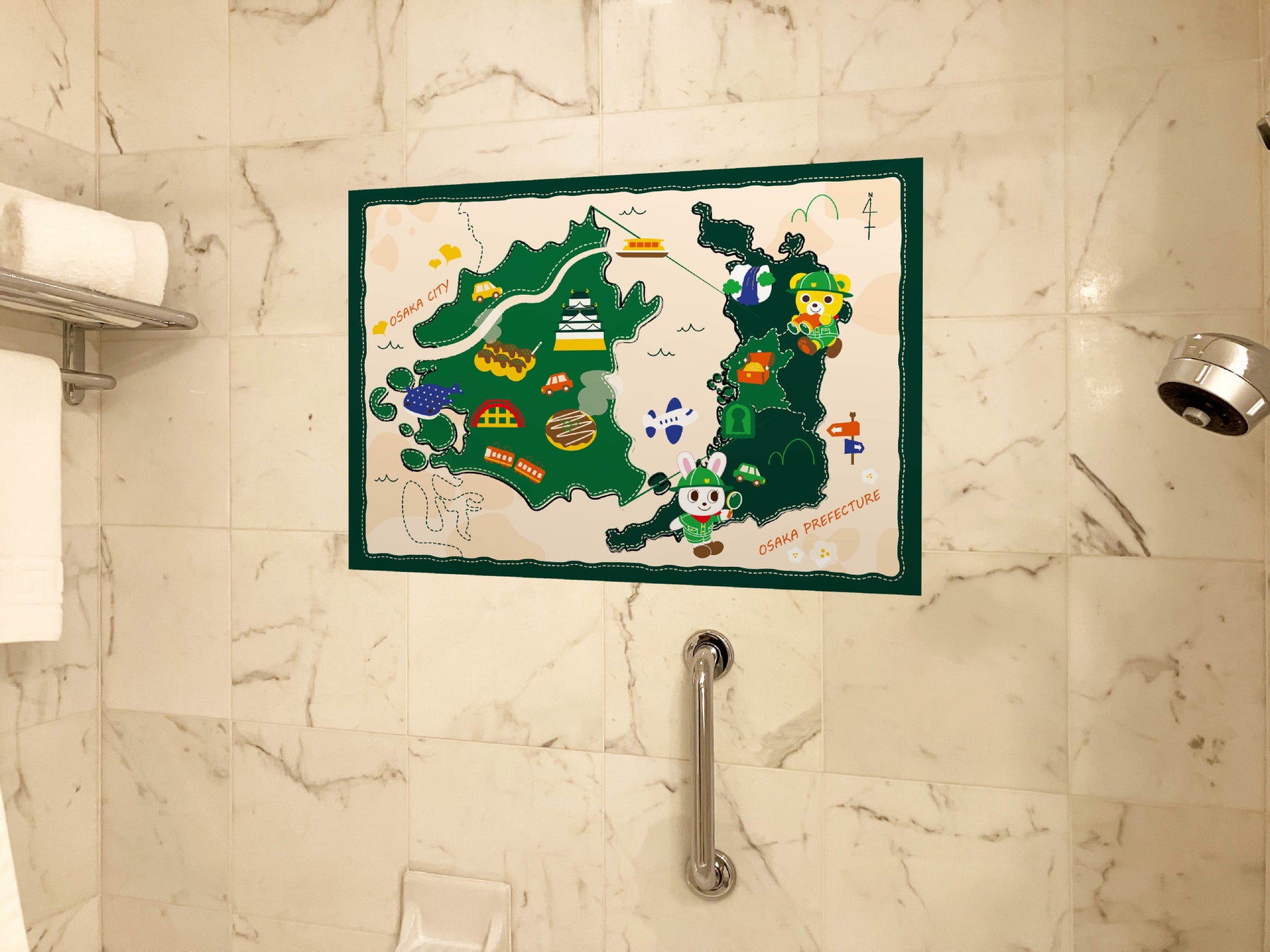 ・バスルームのデコレーション:大阪の地図や「プッチー」と「うさこ」でバスルームを楽しく。