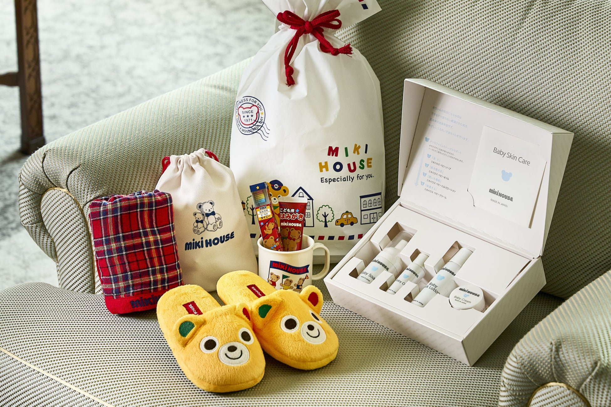 ・お子様用アメニティ(ベビースキンケア トライアルキット、ミキハウスベア歯ブラシ〈タイニー(0歳-6歳用)〉、ミキハウスベア こども用歯みがき、ミキハウススリッパ、フェイスタオル)