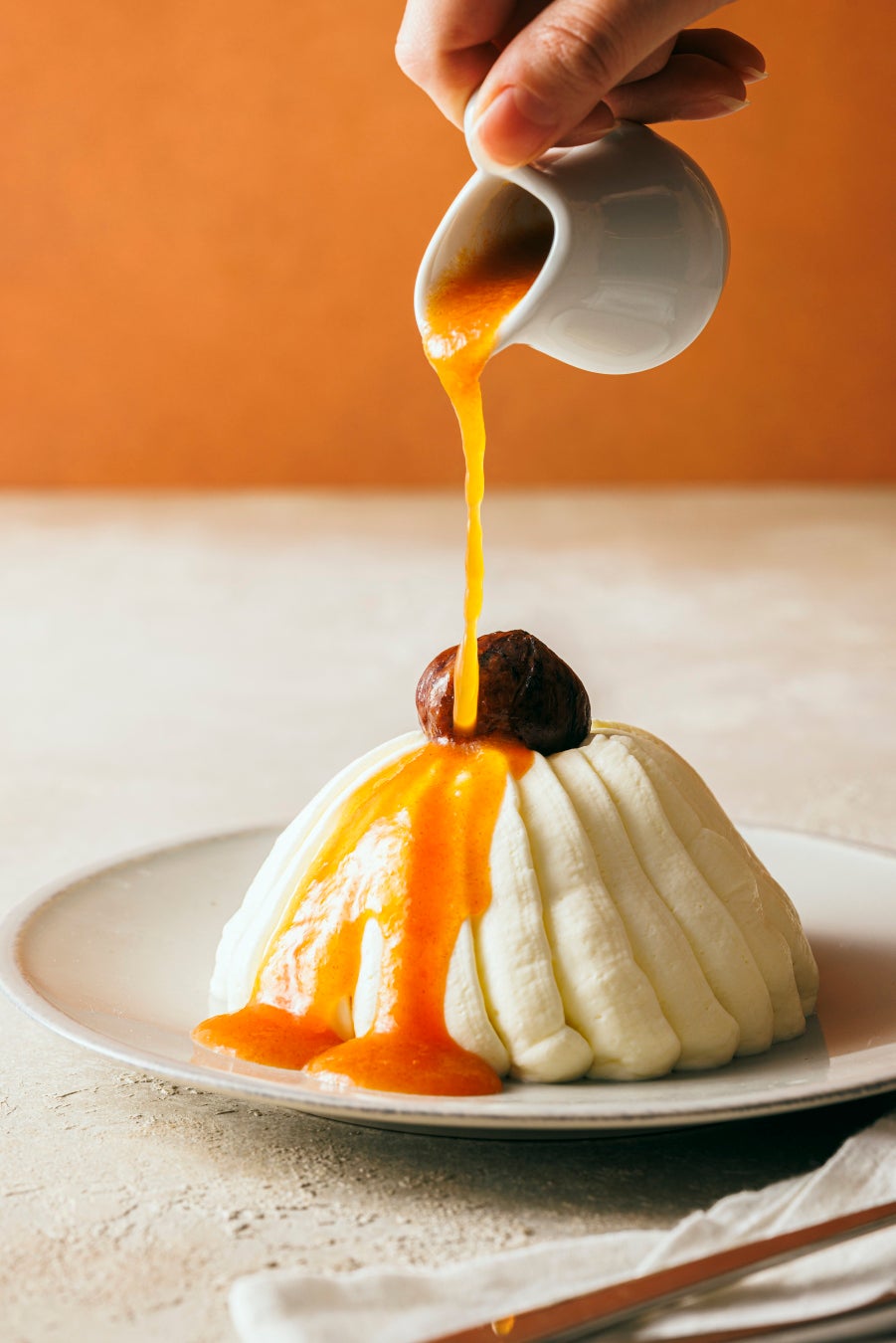 〈吉祥寺店、下北沢店〉スフレモンブラン完熟柿のソース 1,500円(税込1,650円)
