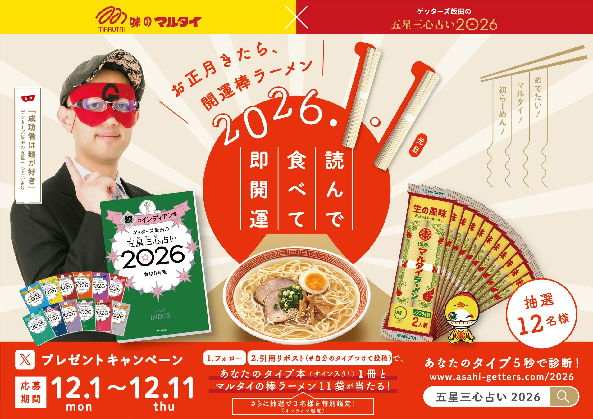 【ゲッターズ飯田が3名様を特別鑑定!】「味のマルタイ」×『ゲッターズ飯田の五星三心占い2026』 読んで・食べて・即開運! Xプレゼントキャンペーン実施