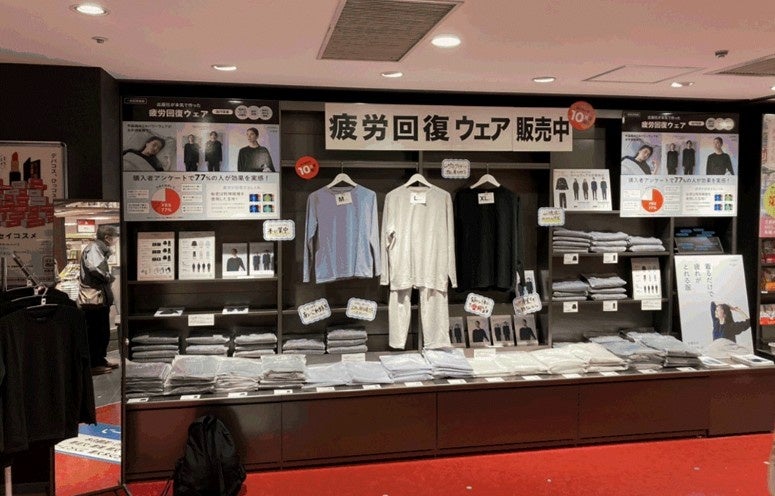 「疲労回復ウェア」は宝島社公式通販サイト「宝島チャンネル」での限定販売でしたが、品質の高さを実際に触れて感じていただきたいと考え、昨年11月から12月にかけて初のリアル店舗での販売を実施。知識や情報をアップデートしたいと考える意識の高い人が集まる場所である書店で、生活の質を向上させる「疲労回復ウェア」を訴求したいという狙いから丸善 丸の内本店で実施した「疲労回復ウェア」ポップアップストアは大好評でした。現在、全国200か所以上の書店で展開中で、店舗から嬉しいお声が届いています。