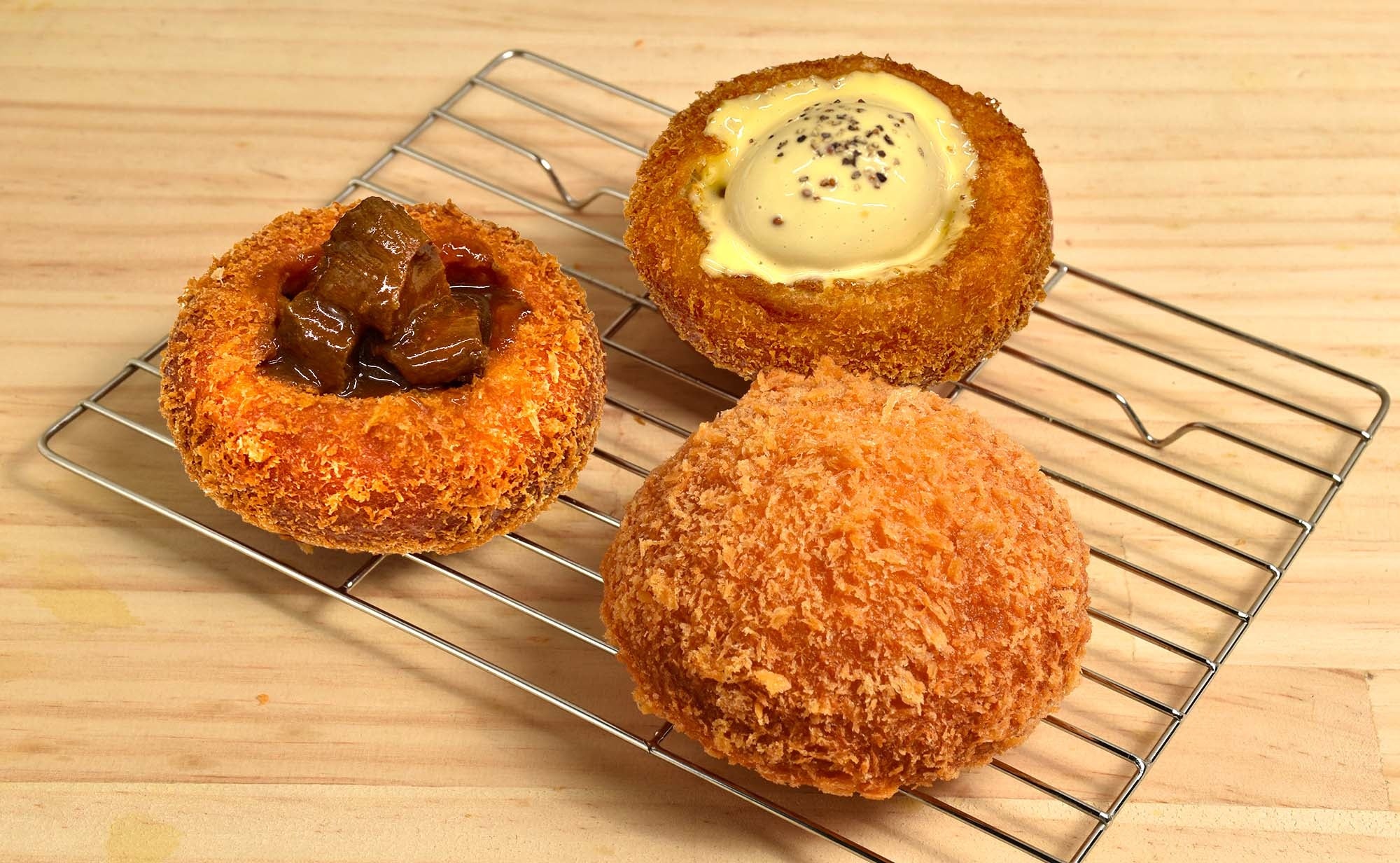 大阪府中央卸売市場に付設する加工食品卸売市場の手作り惣菜店。堺の地しょうゆを味のベースに、強火で5時間煮込んだ「名物 牛すじこんにゃく炊き」がおすすめの<うえだ屋>。今回は人気の「こだわりの出汁巻き」にイベント限定でカレー風味をプラスし焼き上げました。