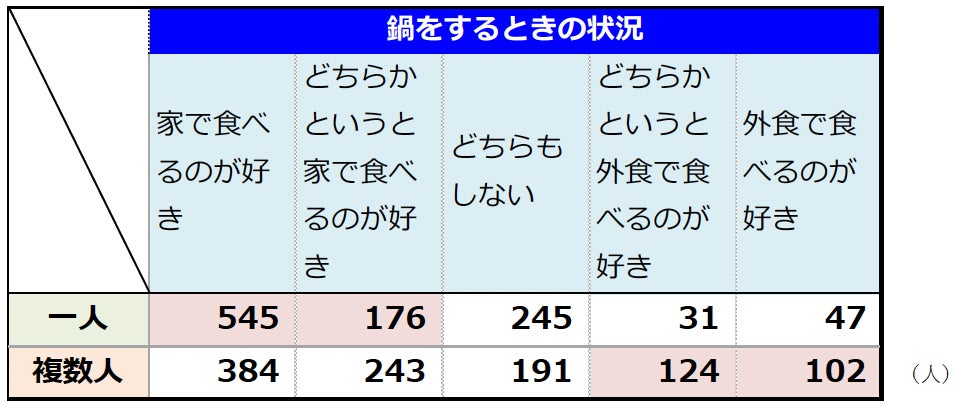 ※「一人鍋」とは、自炊・外食にかかわらず、一人一つの鍋で料理を食べることを指します。