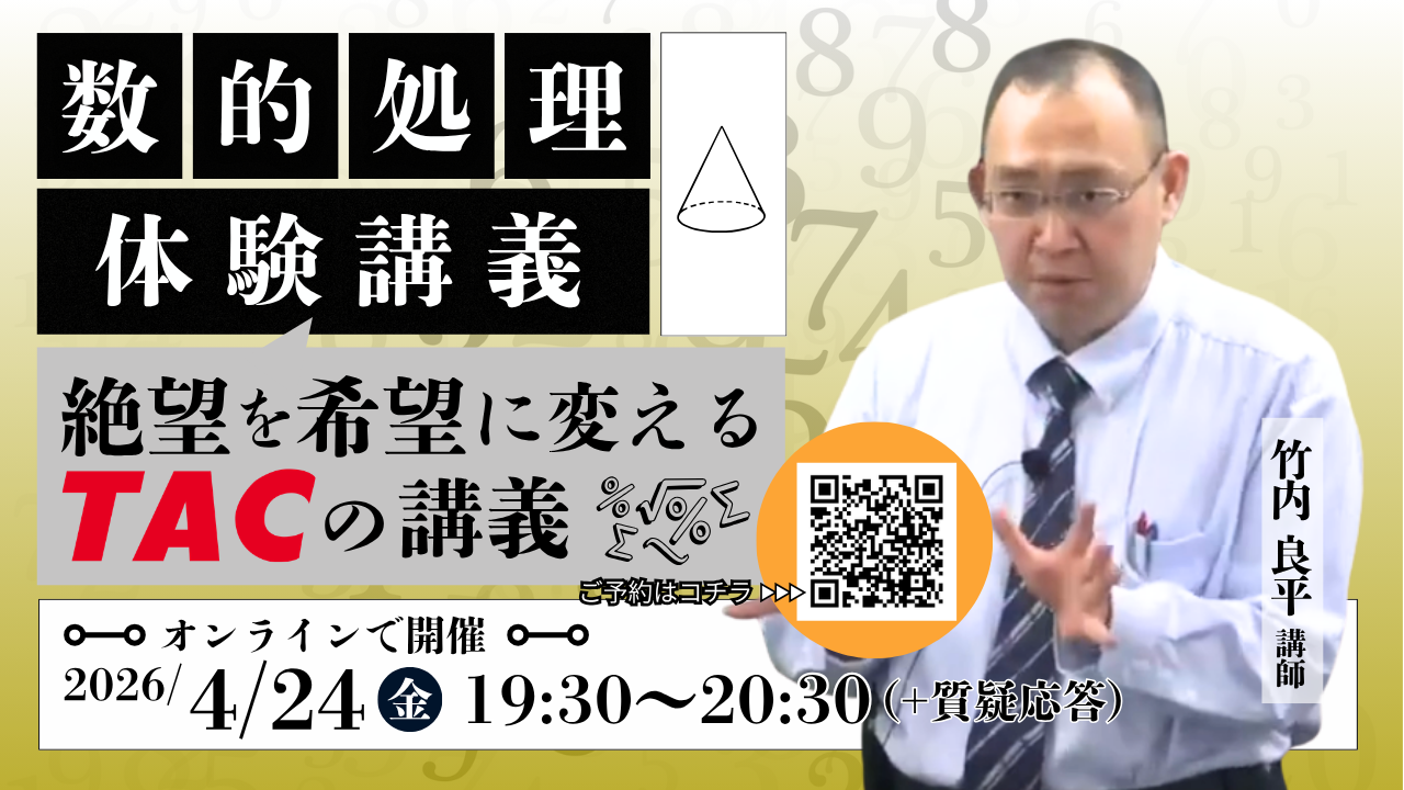 【TAC公務員】4/24(金)オンラインで開催!「数的処理 体験講義~絶望を希望に変えるTACの講義~」