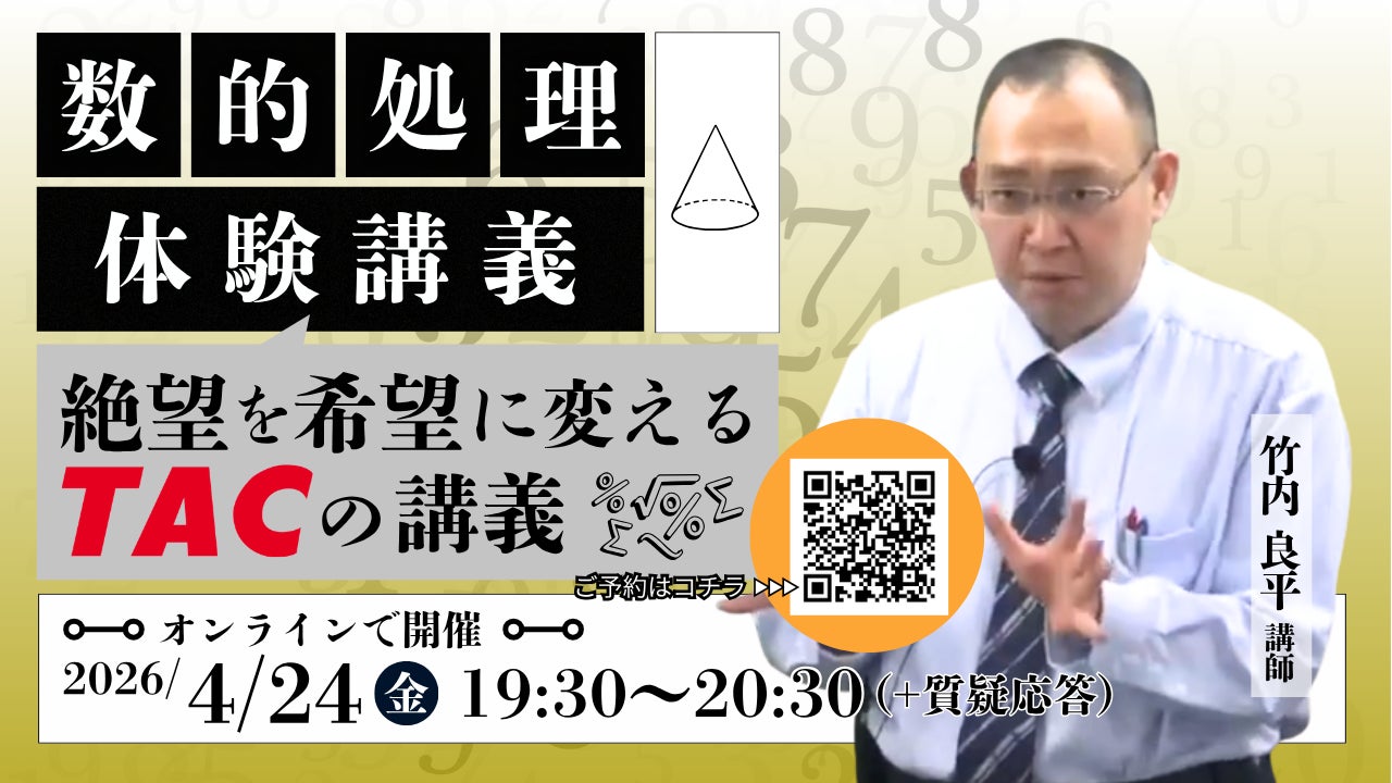 資格取得に向けた教育サービスを展開しているTAC株式会社(東京都千代田区)では、公務員試験を検討されている皆様へ「数的処理 体験講義~絶望を希望に変えるTACの講義~」をオンラインで開催します。