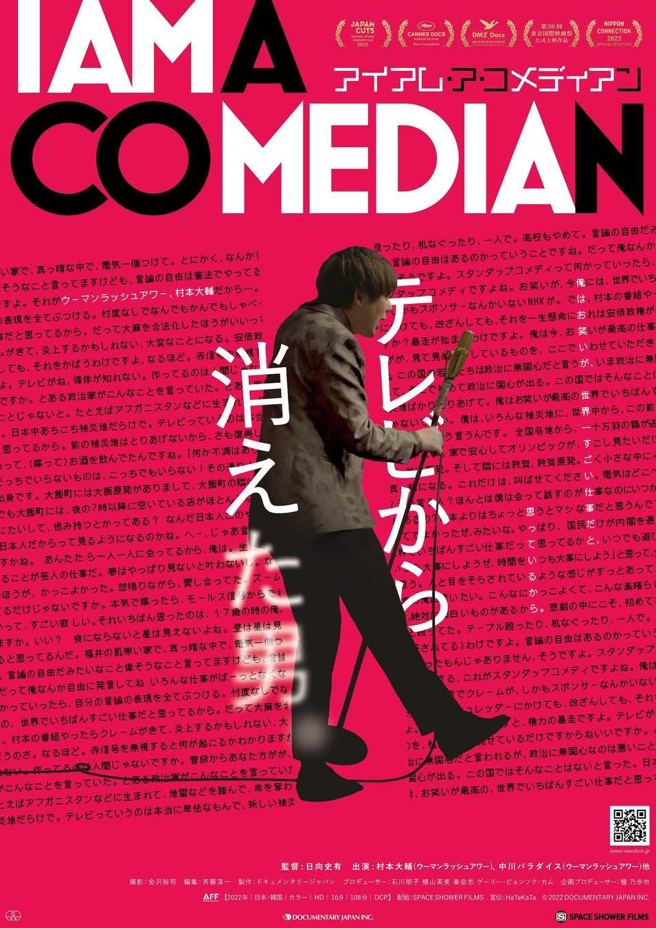 株式会社スペースシャワーネットワーク(本社:東京都港区、代表取締役社長:林 吉人)が運営する日本最大の音楽専門チャンネルスペースシャワーTV(※)は、テレビから消えたお笑いコンビ“ウーマンラッシュアワー”村本大輔。の真実に迫った3年間を記録したドキュメンタリー映画。『アイアム・ア・コメディアン』(製作:株式会社ドキュメンタリージャパン/監督:日向史有)をSPACE SHOWER FILMSの配給で7月6日(土)より劇場公開することを決定いたしました。