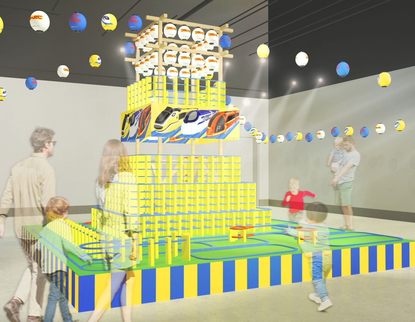 本イベントは、「プラレール」の65周年を記念して、楽天がタカラトミーのIP(知的財産権)を活用して開催します。「縁日」がテーマの本イベントでは、「プラレール」で作られた高さ約4mのやぐら型巨大ジオラマを展示します。やぐら型巨大ジオラマは、来場者が「プラレールウォーク」チケット付きのプラレール車両(数量限定)を購入すると専用のレイアウトで「プラレール」を併走させることができる「プラレールウォーク」を設置したコンテンツです。