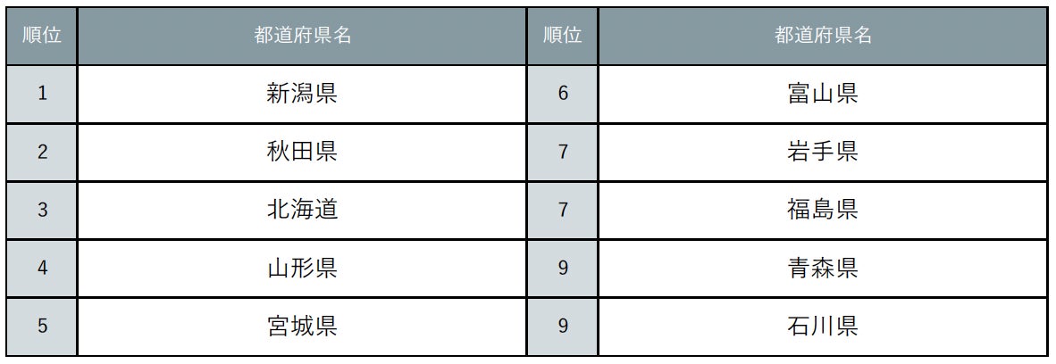 【4位:山形県】「冷たくキレイな水がある」「米といえば!」など米どころイメージが後押しした山形県。庄内平野は一大産地として知られ、生産量もトップクラス。必要条件や環境が揃い、昔から米作りが盛んな地域です。『はえぬき』『雪若丸』などのブランド米が知られる中、「食べるとお米の甘みが広がる」という『つや姫』に関するコメントも見られました。