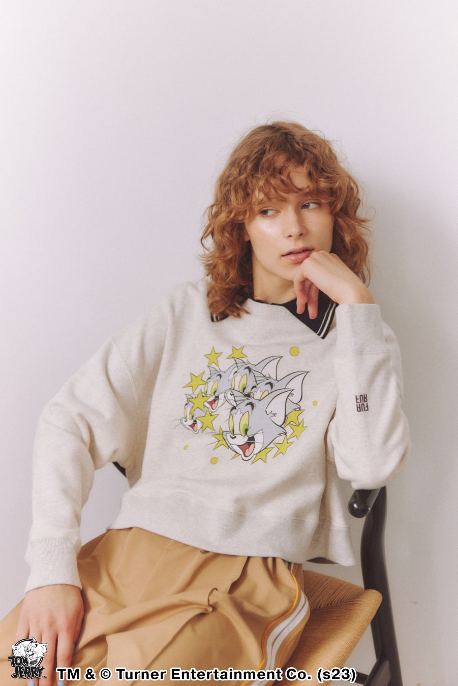 トムとジェリーのフェイスと星を組み合わせたアートをそれぞれプリントした、ファニーな印象のスウェット。