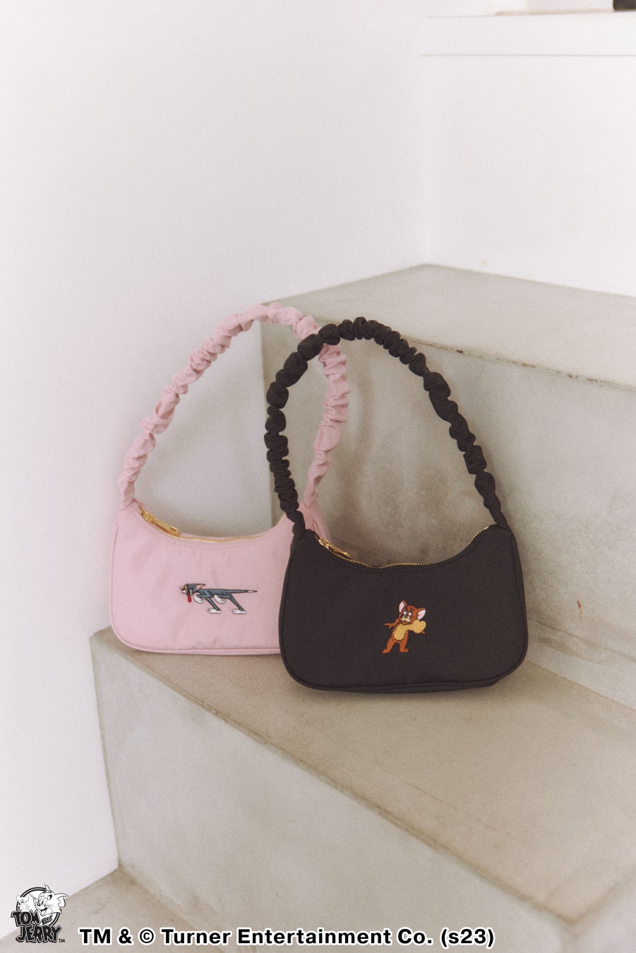 トレンド感たっぷりなフォルムが愛らしいミニバッグのフロントには、トムとジェリーそれぞれのファニーなアートを刺繍。