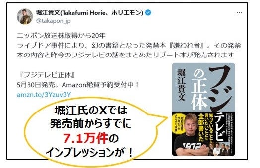 堀江氏のXの事前告知には発売前からすでに 7.1 万件のインプレッション!