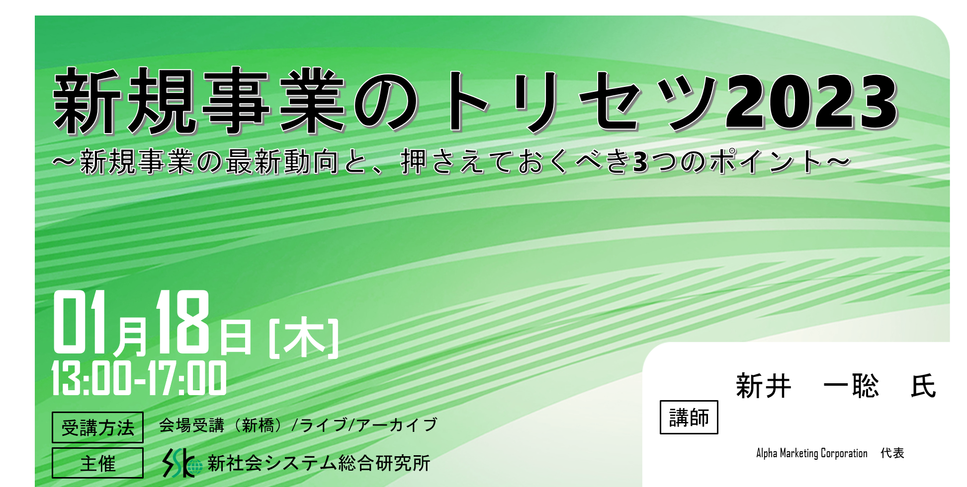 「新規事業のトリセツ2023」と題してAlpha Marketing Corporation新井 一聡氏のセミナーを2023年1月18日(水)に開催!!