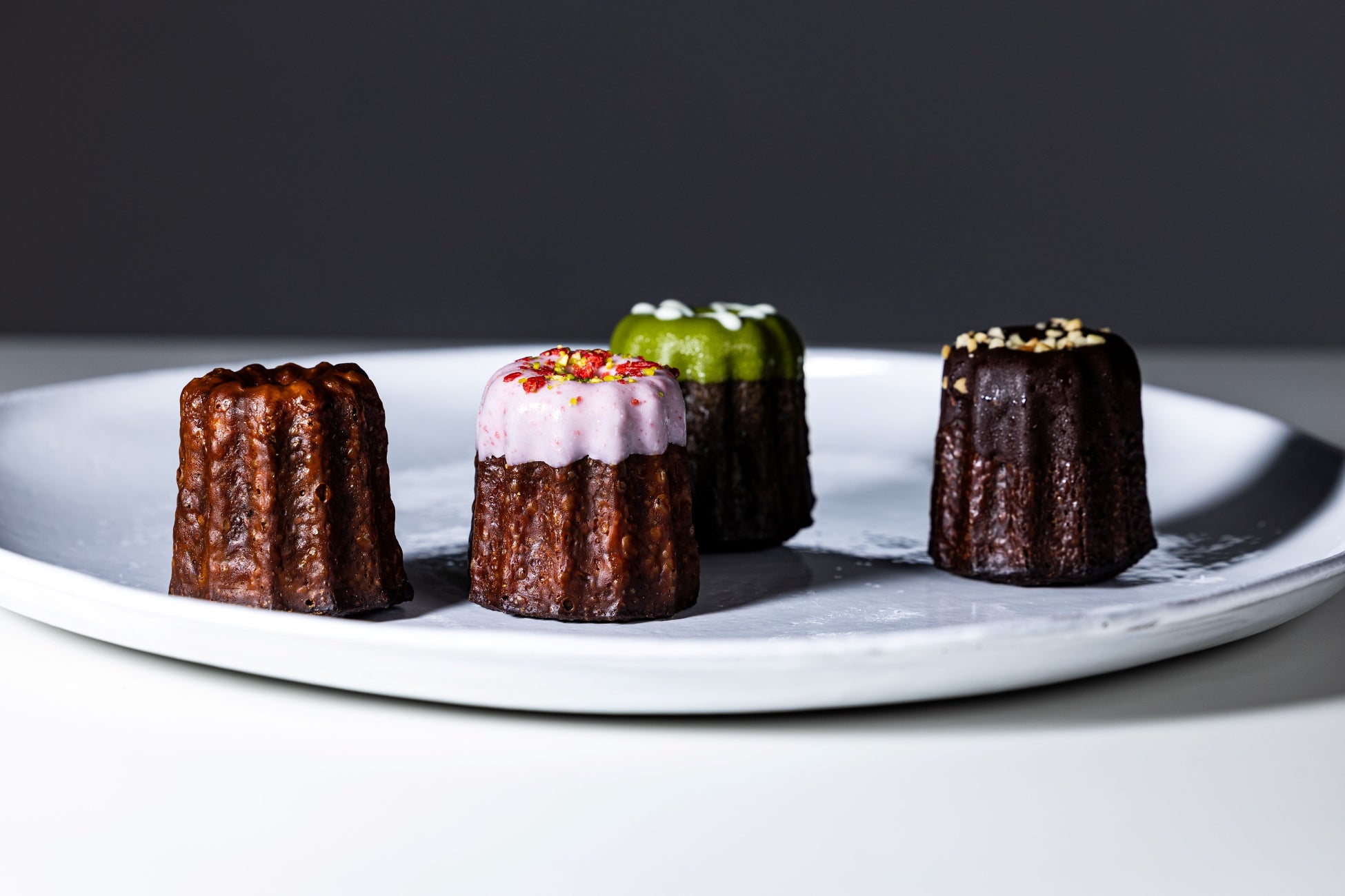 ラム、あまおう、宇治抹茶、チョコレートといった素材がそれぞれ練り込まれたカヌレは、外はカリッと中はもっちり。