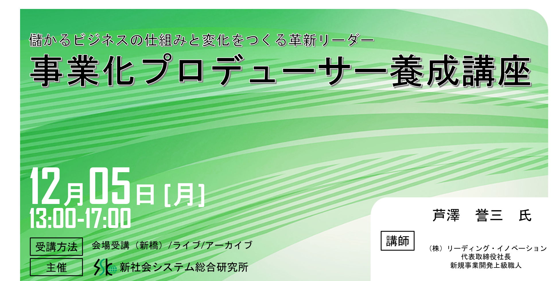 ビジネスセミナーを企画開催する新社会システム総合研究所(SSK)は、下記セミナーを開催します。