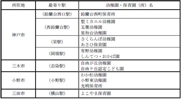 車内ポスターの作成にご協力いただく予定の幼稚園・保育園(所) 計14園(所)